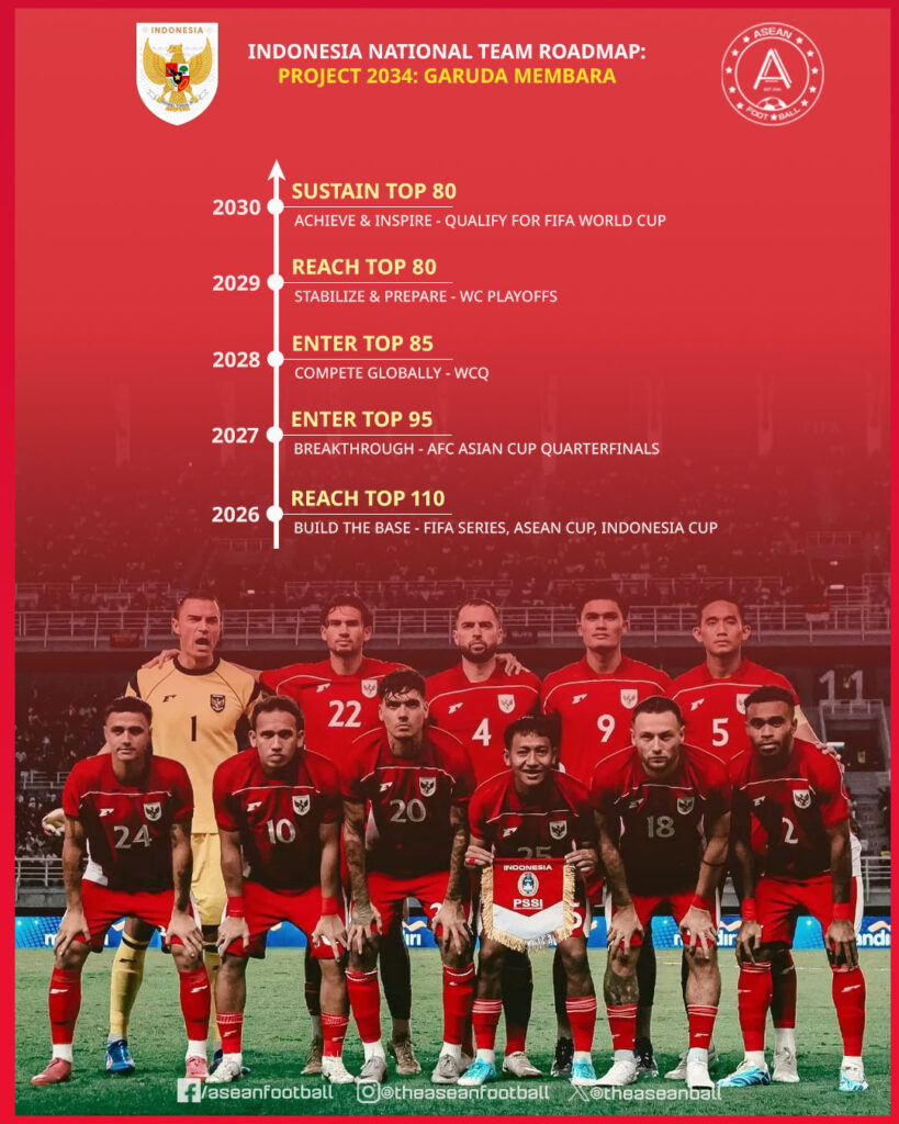 យ៉ាងណា កាលថ្មីៗនេះសមាគមបាល់ទាត់ឥណ្ឌូនេស៊ី (PSSI) ក៏បានបង្ហាញនូវផែនការអភិវឌ្ឍន៍រយៈពេលវែងរបស់ខ្លួនសម្រាប់ក្រុមជម្រើសជាតិបុរស តាមរយៈការផ្សាយតាមទូរទស្សន៍ជាតិ ហើយវាមានមហិច្ឆតាច្រើនរួមមាន៖