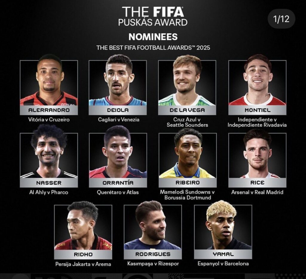 គ្មានកីឡាករ Barcelona ណាម្នាក់ផ្សេងទៀតមានឈ្មោះក្នុងចំណោមបេក្ខភាពនោះទេ។ ក្នុងចំណោមកីឡាករនៅអឺរ៉ុប មានការទាត់បាល់ហ្វ្រីឃីកដ៏អស្ចារ្យរបស់ Declan Rice របស់ក្រុម Arsenal ទល់នឹងក្រុម Real Madrid ដែលក៏មានឈ្មោះផងដែរ។ FIFA បានជ្រើសរើសបេក្ខជនសម្រាំងចុងក្រោយចំនួន ១១ រូបសម្រាប់ពានរង្វាន់នេះ ដែលត្រូវបានបោះឆ្នោតជ្រើសរើសជាក្រុមស្មើគ្នាដោយអ្នកគាំទ្រតាមអ៊ីនធឺណិត និងក្រុមអតីតកីឡាករអន្តរជាតិ។ ថ្ងៃផុតកំណត់សម្រាប់ការបោះឆ្នោតគឺថ្ងៃទី ៣ ខែធ្នូ។ វាមិនច្បាស់ទេថាតើ FIFA នឹងប្រគល់ពានរង្វាន់នេះពីរថ្ងៃក្រោយមកនៅក្នុងការចាប់ឆ្នោតពានរង្វាន់បាល់ទាត់ពិភពលោកបុរស ដែលកំពុងធ្វើឡើងនៅចំពោះមុខប្រធានាធិបតីអាមេរិក ដូណាល់ ត្រាំ នៅទីក្រុងវ៉ាស៊ីនតោនឌីស៊ីឬអត់៕