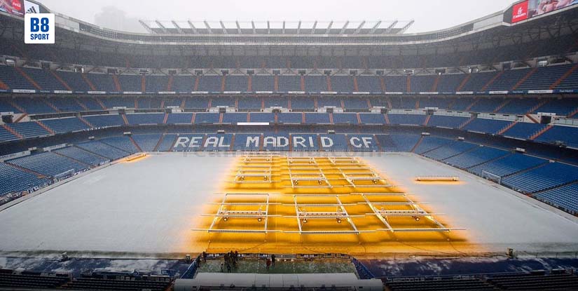 (English) កីឡដ្ឋាន Santiago Bernabéuដ៏ល្បីល្បាញរបស់ក្លិប Rea Madrid ដែលធ្លាប់តែទទួលអ្នកគាំទ្របាល់ទាត់ La Liga និង Champions League ត្រូវបានផ្លាស់ប្តូរទៅជាកន្លែងធ្លាក់ព្រិលទឹកកធំបំផុតនៅលើពិភពលោក សម្រាប់រយៈពេលបុណ្យណូអែលនៅប្រទេសអេស្ប៉ាញ។ ទីលានដែលទើបជួសជុលឡើងវិញថ្មីនេះមានសមត្ថភាពផ្ទុកអ្នកទស្សនាបានជាង ៨០០០០ នាក់ប៉ុន្តែបានបិទទ្វាររហូតដល់ថ្ងៃទី០៤ ខែមករា ដោយសារតែការសម្រាករដូវរងារនៅអឺរ៉ុប។ ដោយសារតែពុំចង់ឲ្យកីឡដ្ឋាននេះនៅឯកោម្នាក់ឯងថ្នាក់ដឹកនាំក្លិប Los Blancos បានរកឃើញវិធីមួយដើម្បីទាញយកអត្ថប្រយោជន៍ច្រើនបំផុតពីកីឡដ្ឋានក្នុងអំឡុងពេលសប្តាហ៍បុណ្យណូអែល។