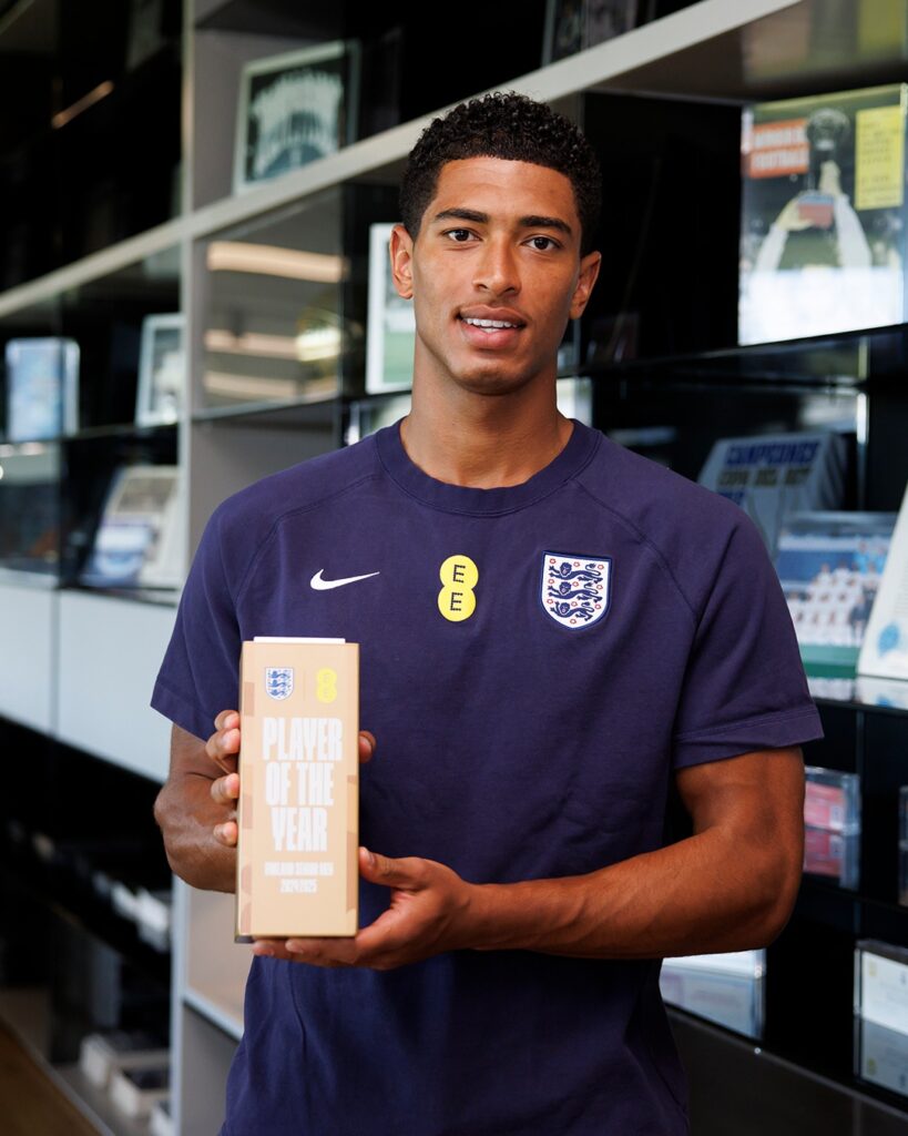 (English) ខ្សែបម្រើ Jude Bellingham របស់ក្លិប Real Madrid បានឈ្នះពានរង្វាន់កីឡាករឆ្នើមប្រចាំឆ្នាំ ២០២៤-២៥ របស់អង់គ្លេសតាមរយៈការបោះឆ្នោតគាំទ្រ ដែលជាព្រឹត្តិការណ៍ប្រវត្តិសាស្ត្រ សម្រាប់ខ្សែបម្រើរូបនេះ ។ កីឡាករវ័យ ២២ ឆ្នាំរូបនេះបានយកឈ្នះ Declan Rice របស់ក្លិប Arsenal និង Harry Kane របស់ក្លិប Bayern Munich ដើម្បីដណ្តើមយកពានរង្វាន់ដ៏មានកិត្យានុភាពនេះ ។ Jude Bellingham ក្លាយជាកីឡាករទី ២ ដែលឈ្នះពាននេះ ខណៈដែលខ្លួនមិនមែនឲ្យក្លិបអង់គ្លេស បន្ទាប់ពី Owen Hargreaves ជាមួយ Bayern Munich ក្នុងឆ្នាំ ២០០៦ ។